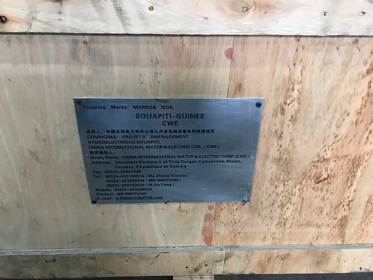 中國水力電力對外有限公司幾內亞蘇阿皮蒂項目供貨